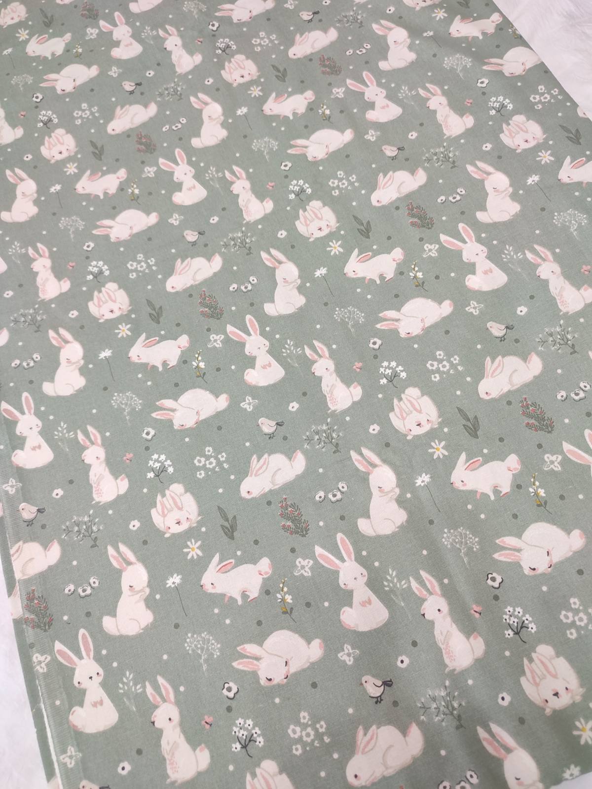 Фланель принт (Белые зайчики на грязно-мятном фоне)