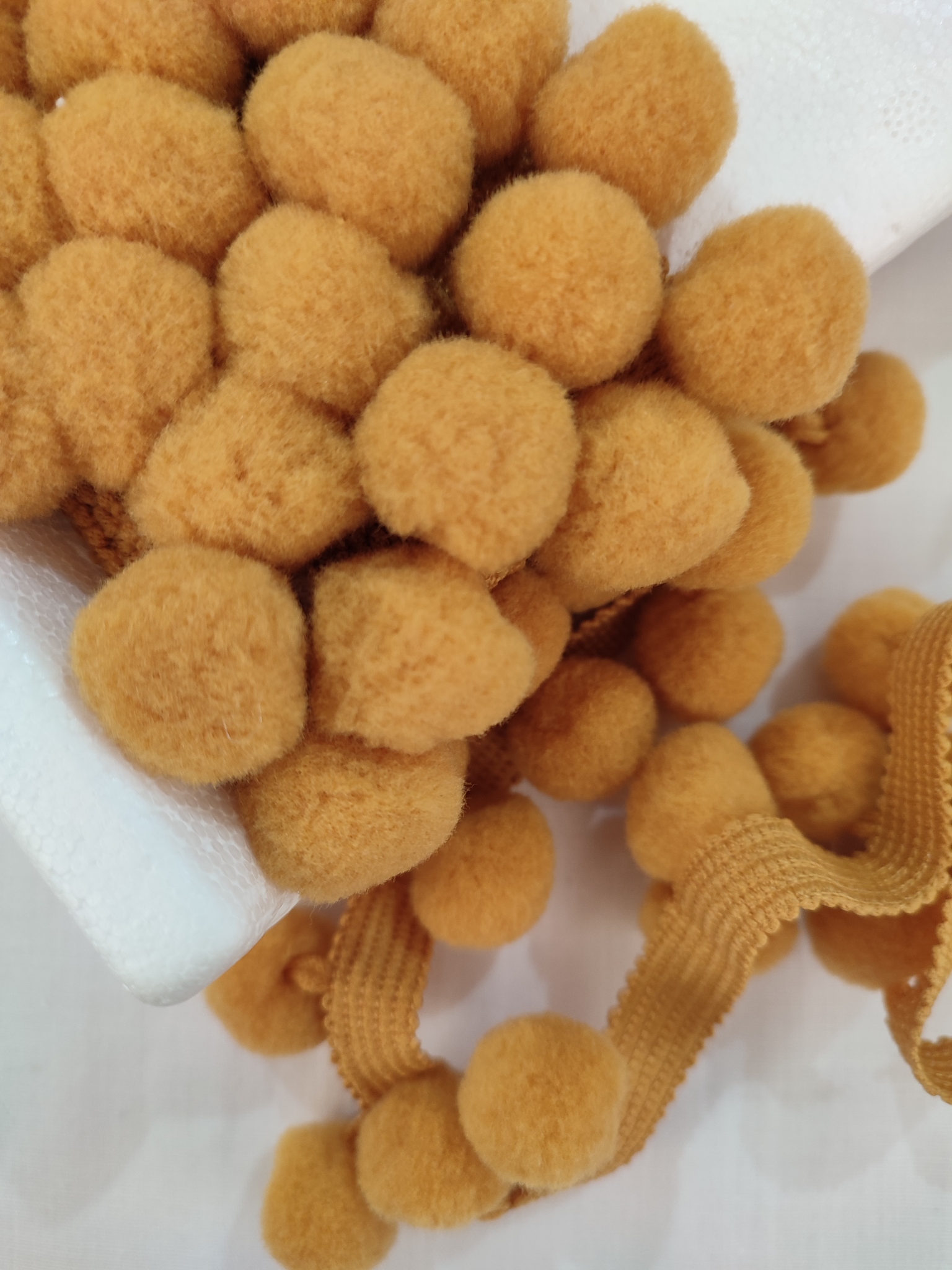 Помпоны на тесьме (цвет горчица)